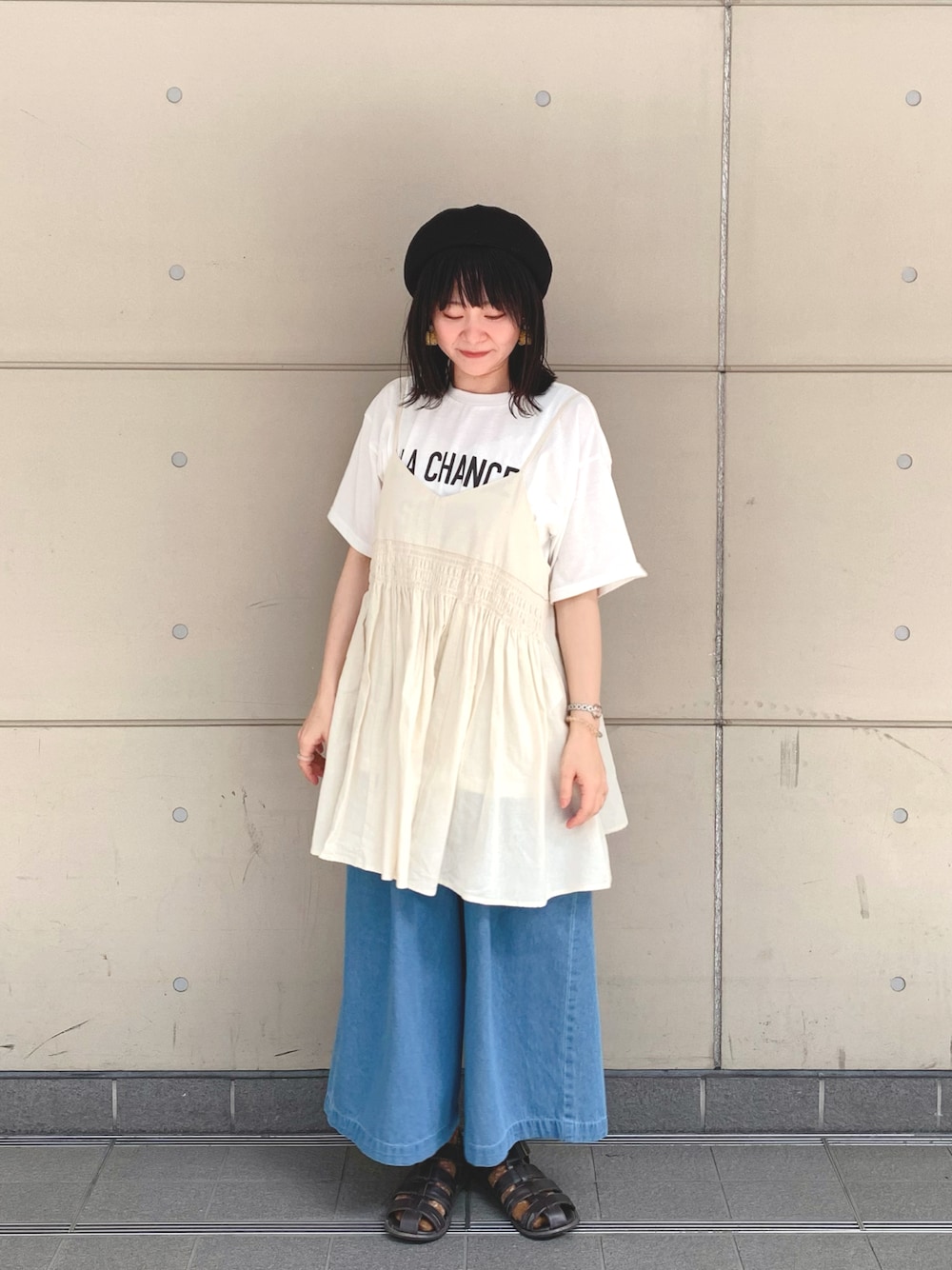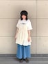 接触冷感Tシャツに、裾から風が入るガウチョデニム。 暑がりさんには是非着て欲しいです🎐