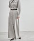 同素材のセットアップを着用してみました♪ シャツはタックでウエストシェイプした、すっきり見えするシルエットです!タイを外し、スタンドカラーとしても着用できます。 パンツは、腰位置高く、スタイルアップが叶う一着です◎ 太めのパンツで、ラインも拾いすぎないシルエットです☺︎