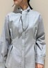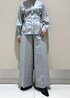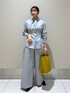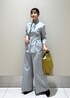 同素材のセットアップを着用してみました♪ シャツはタックでウエストシェイプした、すっきり見えするシルエットです!タイを外し、スタンドカラーとしても着用できます。 パンツは、腰位置高く、スタイルアップが叶う一着です◎ 太めのパンツで、ラインも拾いすぎないシルエットです☺︎