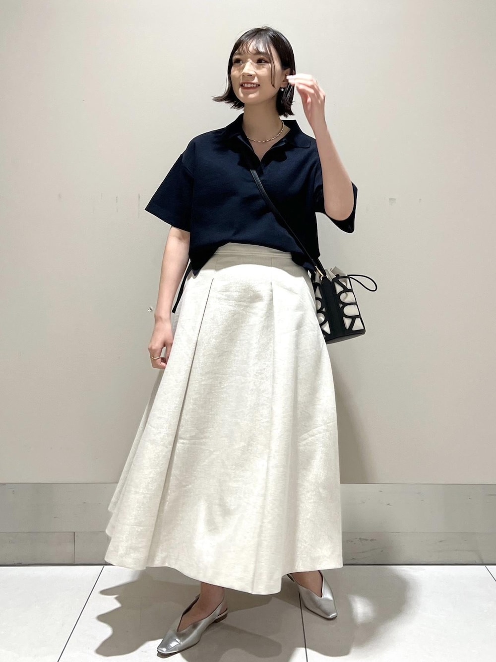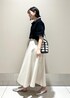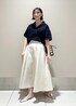 シャリ感のあるサラッとしたトップスに、ラメ入りの華やかなフレアスカートを合わせ、GWのお出掛けスタイリングにしてみました♪