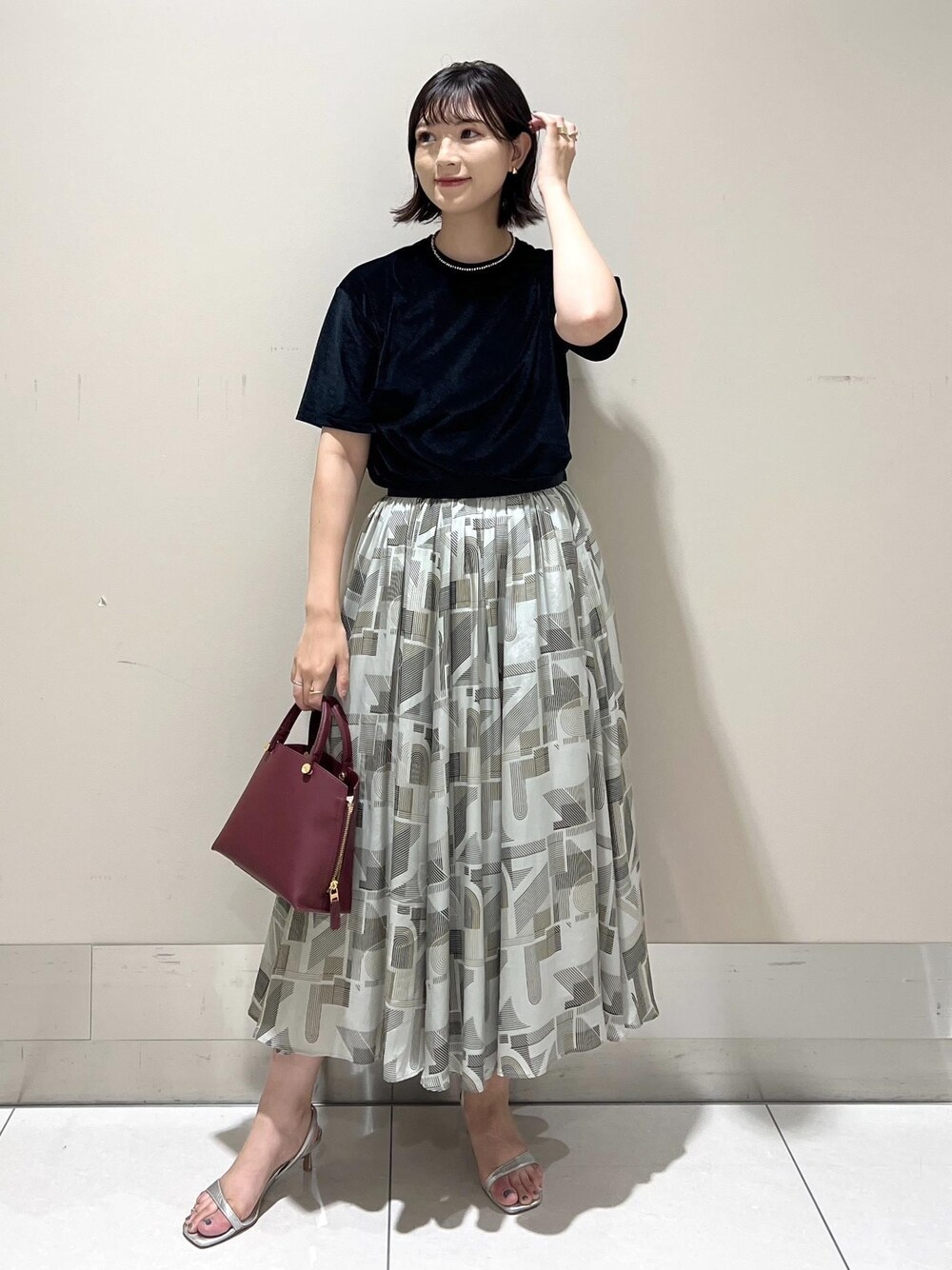 今からご着用いただけるベロアのトップスに総柄のフレアスカートを合わせ、女子会スタイリングに仕上げてみました♪ ぜひ参考にしてみてください!