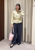 ペプラムシルエットがフェミニンなドットブラウスをメインに スタイリングしてみました! ボトムはラクなイージーワイドパンツを合わせ、 春のお出掛けや旅行におすすめのスタイリングです◎ ぜひ参考にしてみてください!