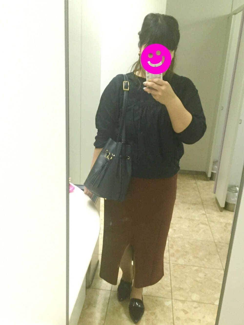 出勤コーデ☻ 暑いけど着たくて着たくてUNIQLOのメリノブレンドリブスカートでコーデ♡ このスカート、スリットは前後どっちでもOKなのかな??