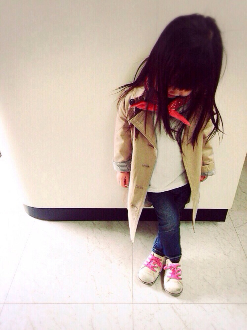 髪の毛アップしたかったのに嫌がられバッサバサ(^_^;) バンダナはママが小学生の時に使ってたのが出てきたのでw