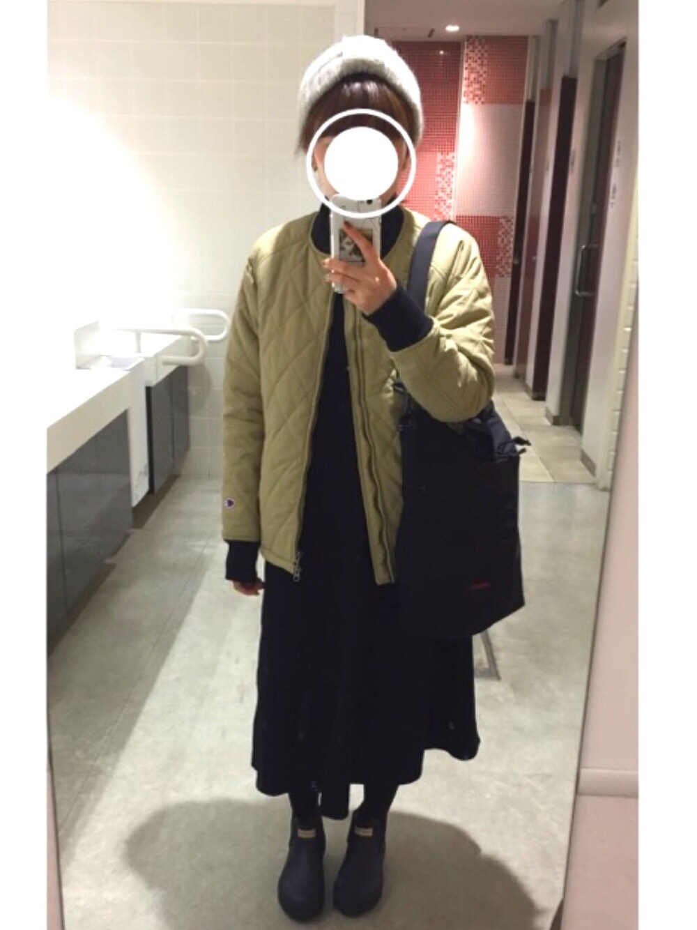 HUNTER履いたのに全然雨に降られず。 BREIFINGのトート初おろし!やっぱり可愛いし使いやす〜〜い😎 CA4LAのターバンは耳が隠せるからめちゃあったかくて寒い日は重宝します🤗 Championのブルゾンはメンズものですが普段Sサイズの私でも全然着れる!黒い服ばかりなのでベージュは相性が良いです♪