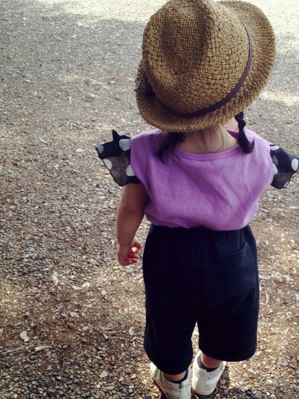 最近、お気に入りのトップス♡ 袖がドットフリルー٩̋(๑˃́ꇴ˂̀๑) ガウチョパンツ風と合わせて ちょいと、大人びたスタイルに。