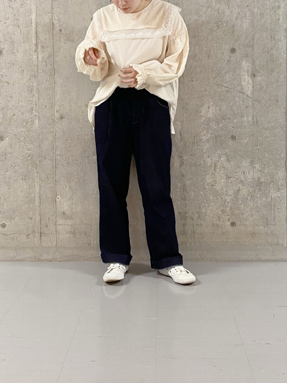 甘めブラウスとデニムの合わせ やっぱり可愛いよな〜🐏🐏