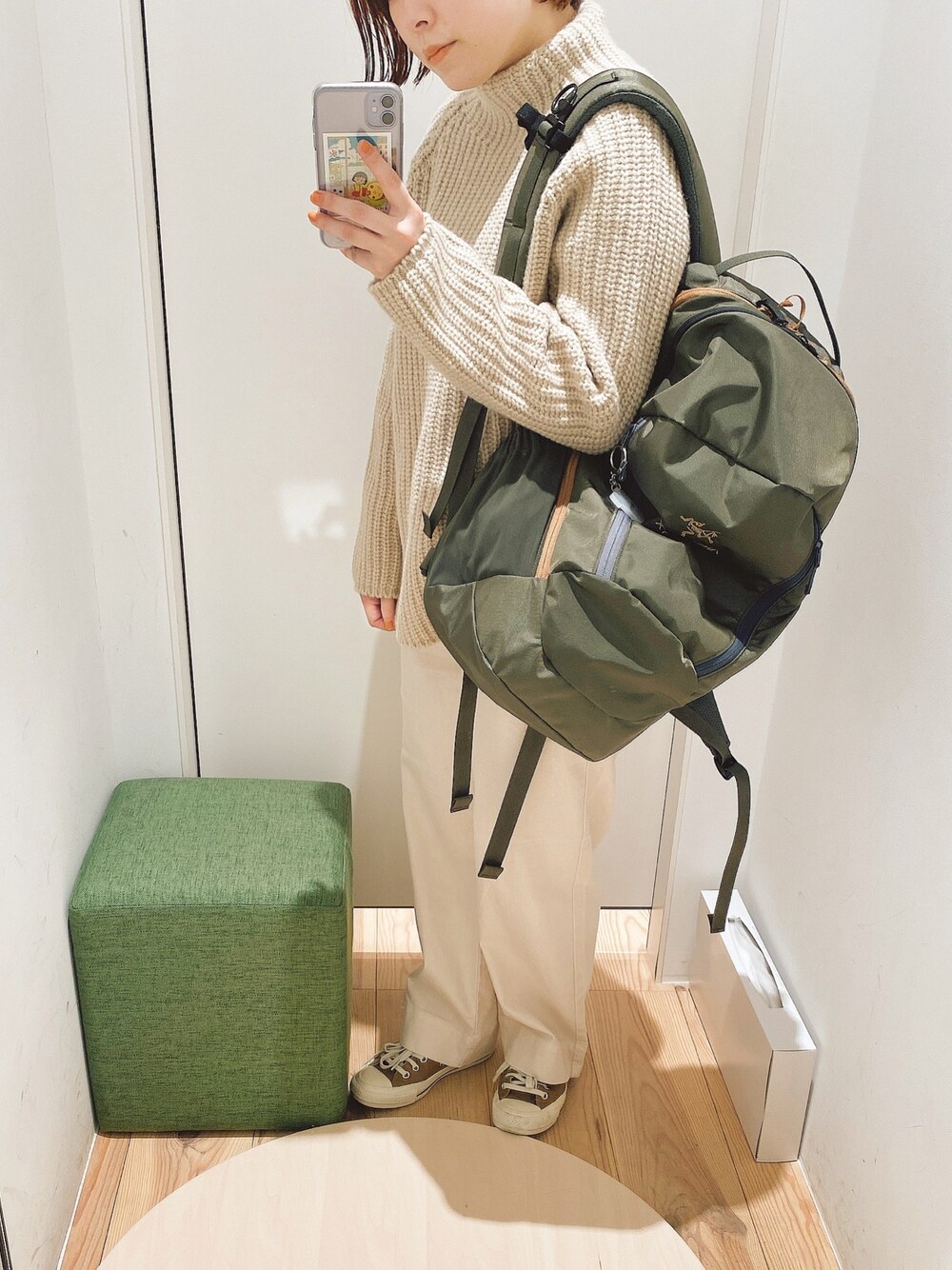 淡色コーデにカーキでカジュアルな合わせに🥝🌿