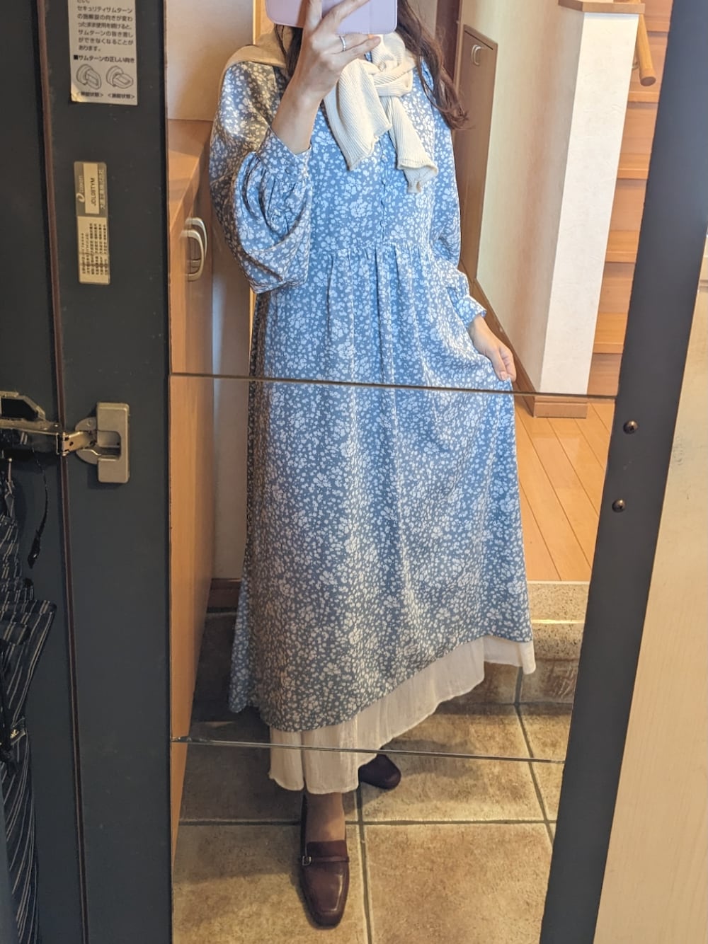 彩のワンピース「【一部店舗限定】柄アソートくるみ釦ワンピース」を使ったコーディネート