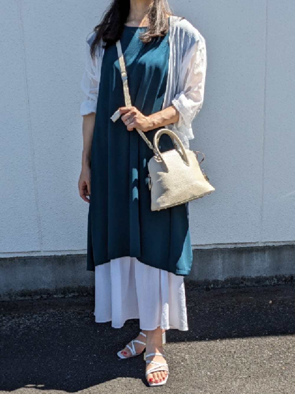 今日も暑い中、お買い物! ダークグリーンのワンピース…これはブルベ冬の色かなーと思って出してみました。 真っ白のレースボレロとスカートもブルベ冬らしい。 今日は真っ白のサンダルを購入。