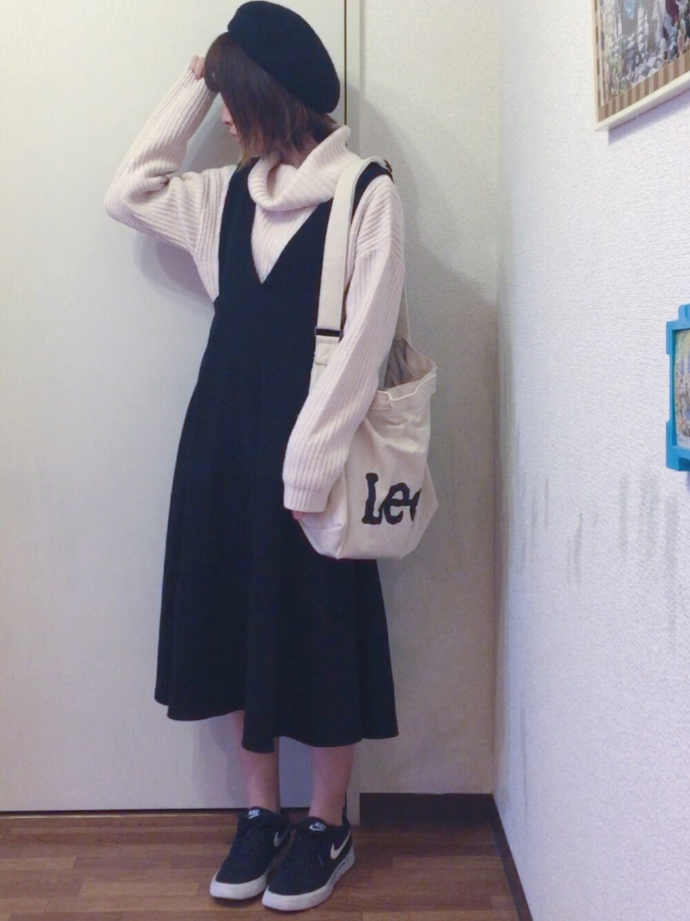 ジャンパースカート率高め🤭 ベレー帽もヘビロテです。 女の子らしいコーデにしました🙆