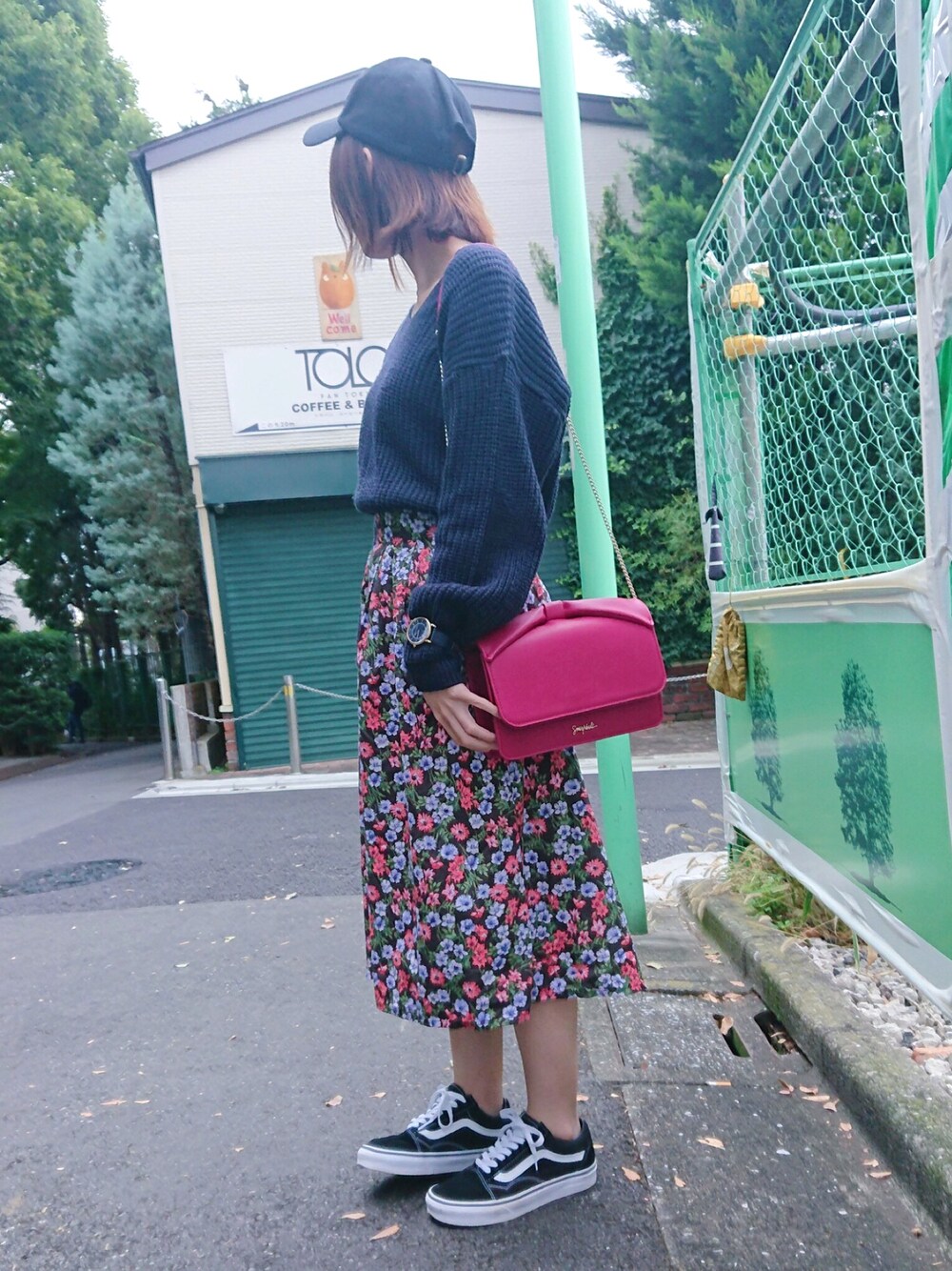赤っぽいバッグが欲しくて サミールナスリの物をゲットしました👜 ネイビーのニットに 花柄スカート合わせました🌸