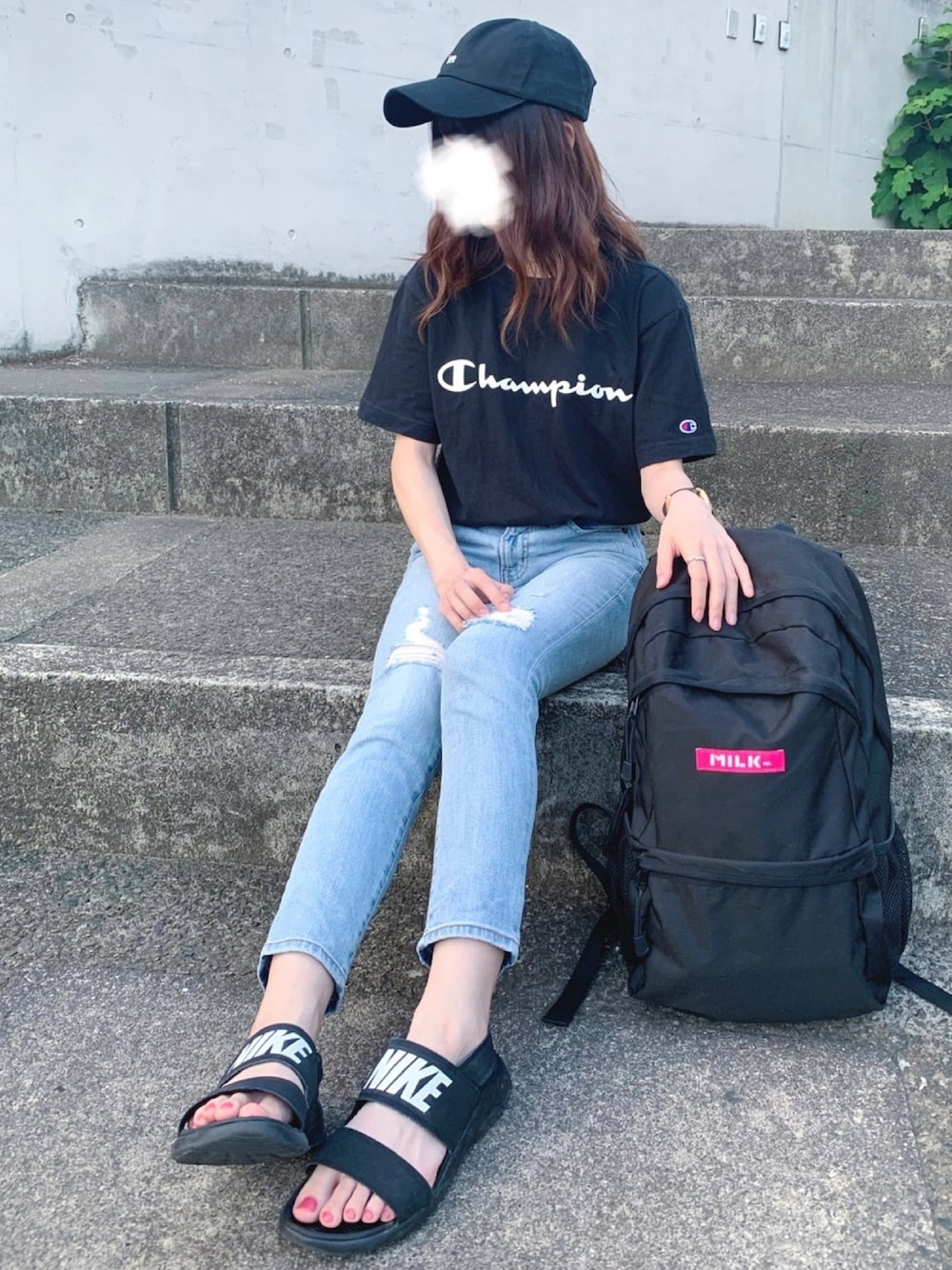 お久しぶりです📷 ChampionのロゴTに GUのデニムを合わせた シンプルコーデ🙂 ベルト⇒H&M