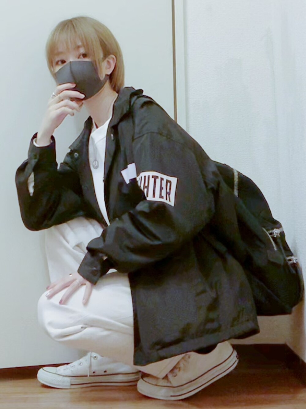 人生初ブリーチをしていただき 金髪になったあやらてです。 ヤンキー味が増して喜んでいます。 上も下も靴もホワイト。 迷ったらホワイトで揃えがち。 ラフコーデ😌