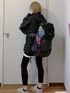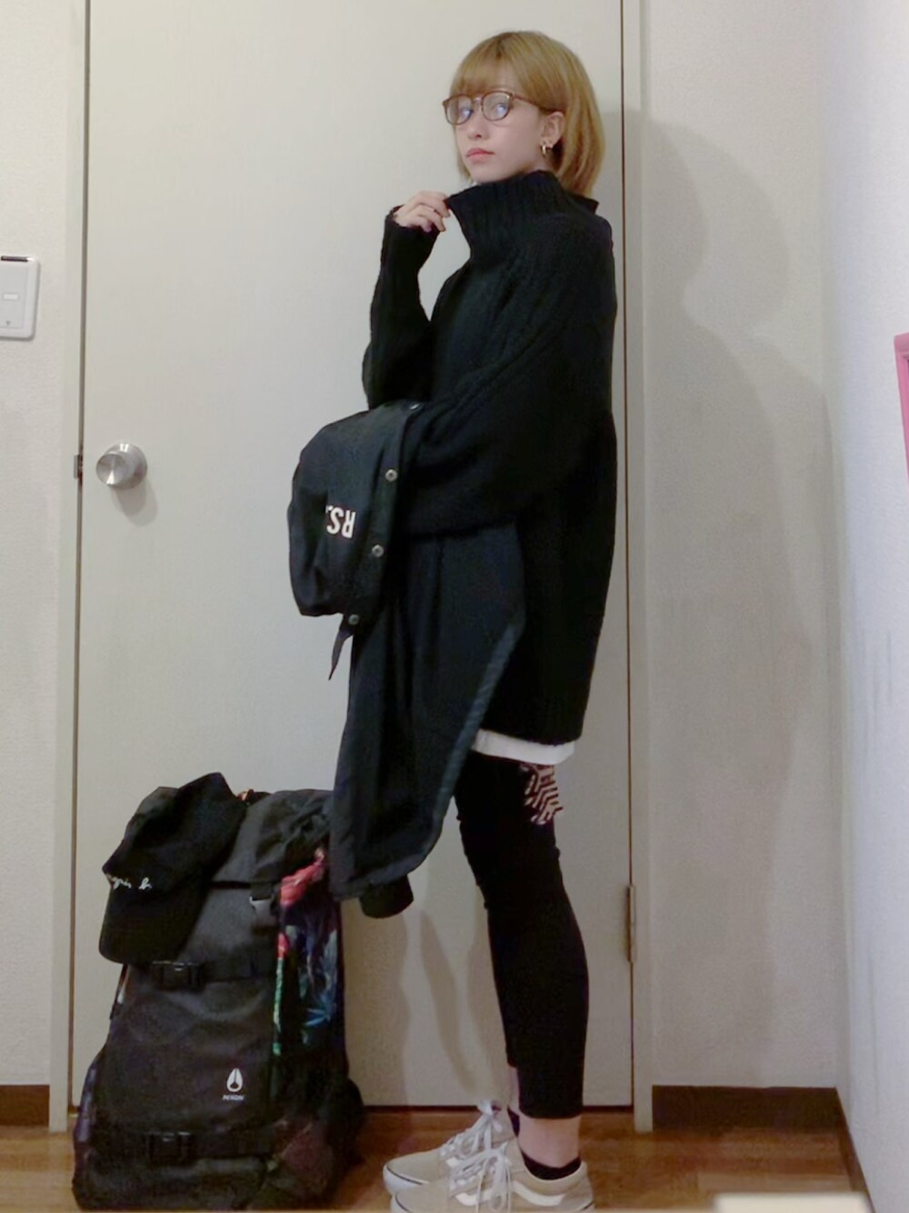 黒タートルニットに黒スキニー 上下GRLでした¨̮ シンプルだったので伊達メガネを追加👓 最近モノトーンばかりなので 明るいカラーのアイテムを探しています💭
