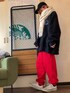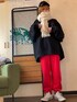 いつかのコーデ。 パートナー宅に滞在していて服が少なく 赤パンツを着回しまくっていた時のやつ🦩 4枚目発光してる🌞 結局この日は陽射しが暑かったので ストール外して出掛けました。