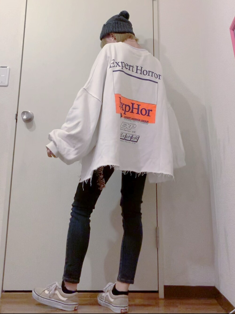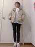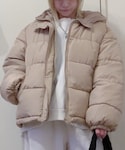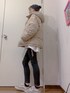 スウェットに黒スキニーで シンプルカジュアル¨̮ アウターはベージュのダウンにしました☃︎