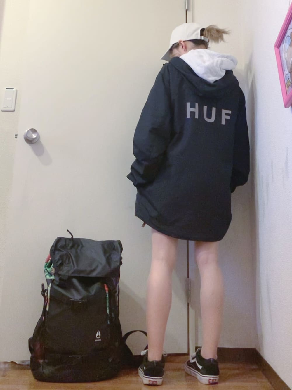 あやらてのナイロンジャケット「HUF ESSENTIALS ZIP STANDARD SHELL JACKET ハフ エッセンシャル ジップ スタンダード シェル ジャケット」を使ったコーディネート