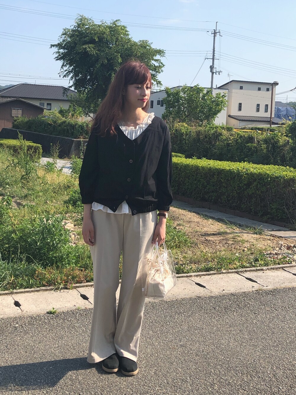 めっちゃいいお天気☀️ 写真では七分袖のトップス羽織ってますが、すぐ脱いで半袖になりました! ついに、半袖デビューです♪*。 いつも人より遅れて半袖デビュー。笑 中は白のシフォン系のふわふわしたフレア感たっぷりのトップスです。 キレイめのパンツを履いたので黒の羽織と黒のエスパドリーユを合わせてみました フレア感が中途半端になって写ってるのでちゃんと整えてから撮影すればよかった笑 毎日今日みたいなお天気がいい!!