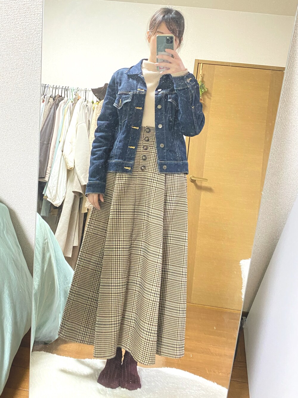 ・×・のニット/セーター「リブ切り替えハイネックニット」を使ったコーディネート