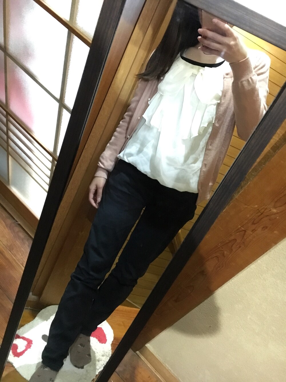 バイトへ行くためだけのコーデです! バイトのマネージャーにはスカートでもワンピースでもなんでも着ていいよ!って言われてるけどさすがにズボンにしてます。 ちなみにバイトは、あの、全国に1番多い?コンビニです!!!!! あともう少し!ラストスパート╭( ・ㅂ・)و✧*。! 今日は暑かったので、カーディガン1枚羽織るだけでも十分でした♪*。 シフォンブラウス?は、2年ぶり?1年半ぶり?ぐらいに着ました(~ ˙ª˙ )~ ブラウス少し大きくて胸元広くて際どいので中に黒のシャツ着たんだけど、それが余計に目立ってしまって悲しい。。。(´ω`;) トップスが白のブラウスとピンクカーディガンに対し、ボトムスが黒のスラックスで甘辛ミックスコーデになりました(∩^o^)⊃━☆゚.*・。