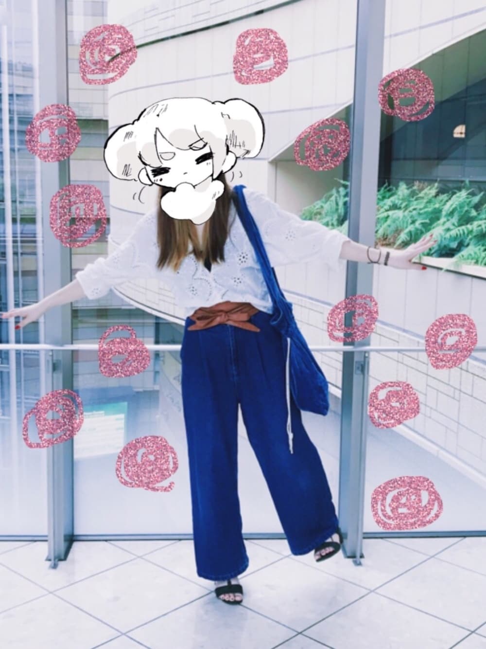 ◦ゆにこ系◦のデニムパンツ「ハイライズワイドデニムパンツ540-5527/052-7405」を使ったコーディネート