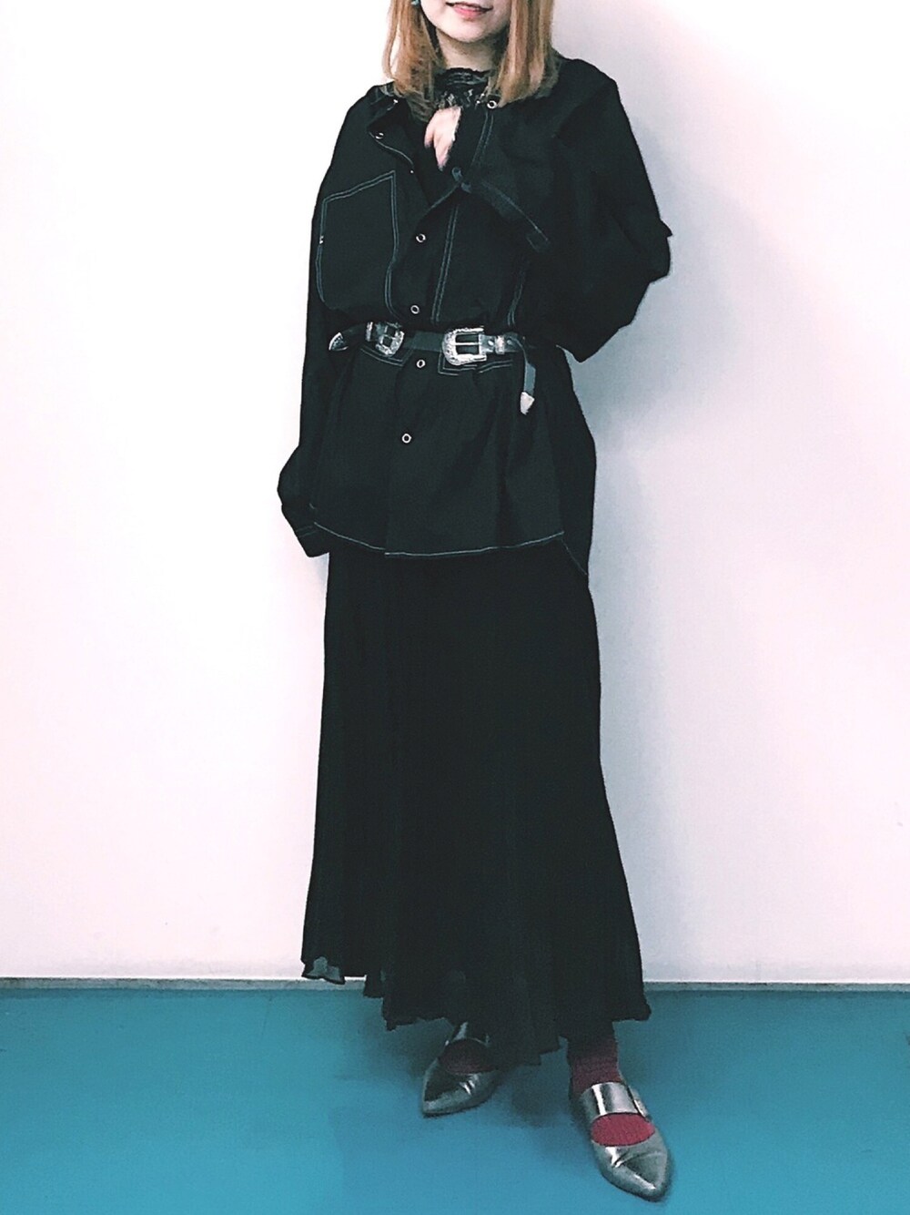 ◦ゆにこ系◦のシャツ/ブラウス「リングドットビッグワークシャツ /ルーズシルエット」を使ったコーディネート