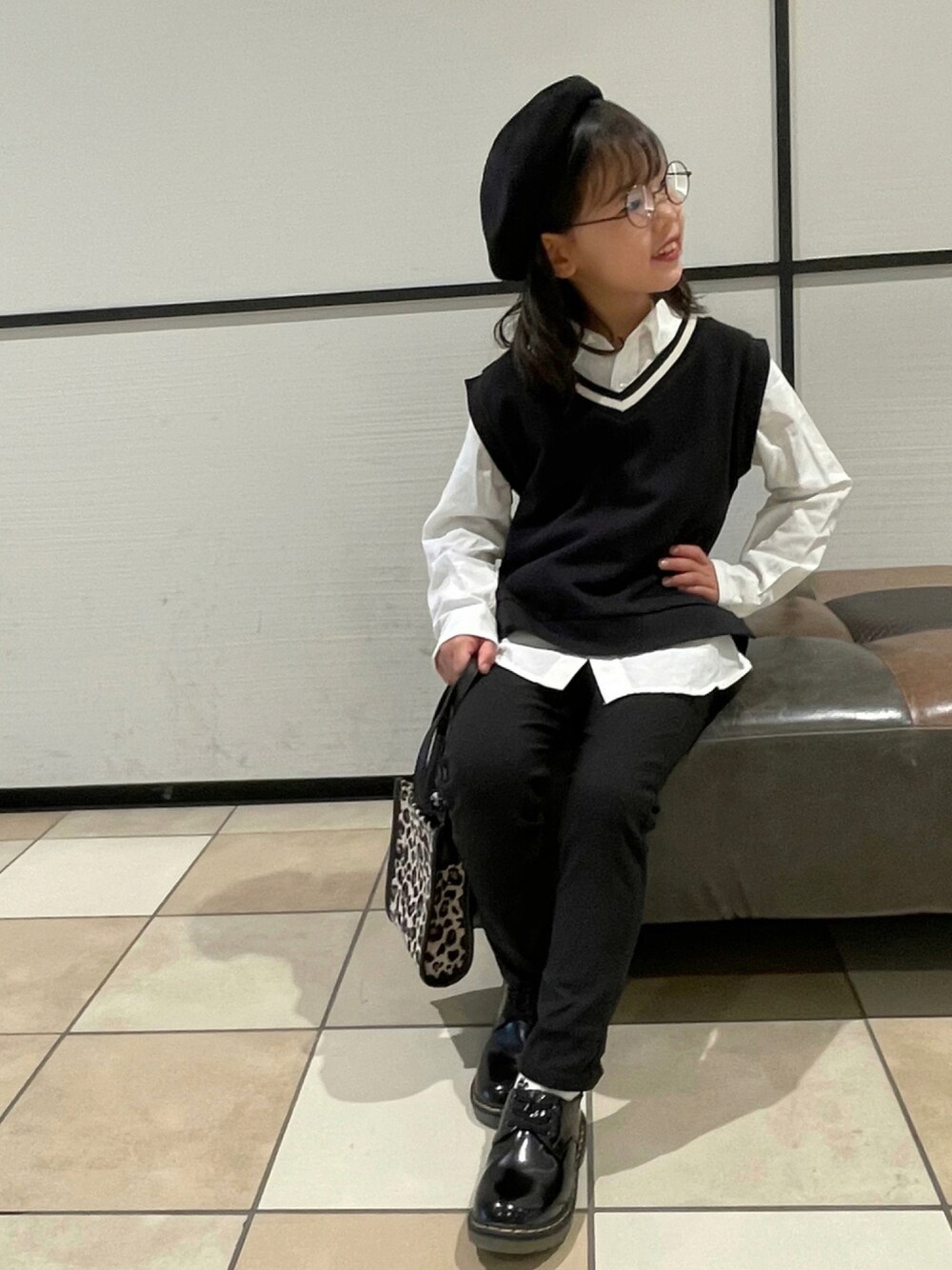 マニッシュコーデでいつもより大人っぽい雰囲気に❤︎ . レオパバッグは3coinsの新作𓂅 やっぱり秋冬はレオパアイテム合わせたくなる‼︎ . . チルデンベストはバースデイでロンTと2点セットでした☺︎❤︎ 息子っち用に買ったけど女の子が着ても可愛いやつ⸝⋆ .