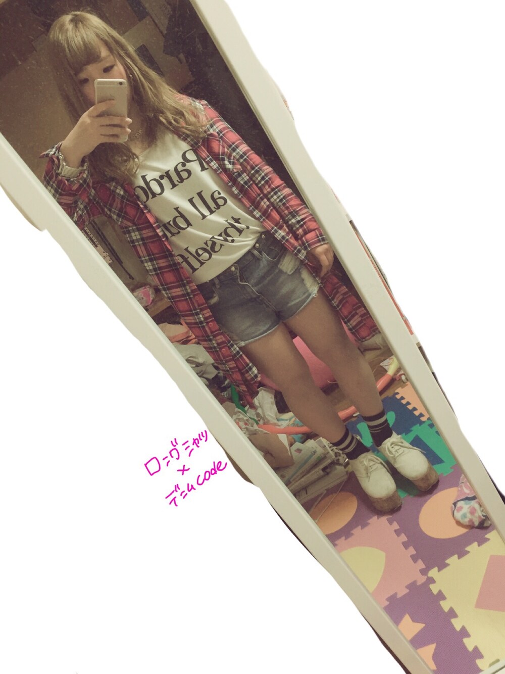 ロングシャツxデニムのパンツ 足を出すのもこれで軽く カバーできる! お気に入り(´-`).。oO