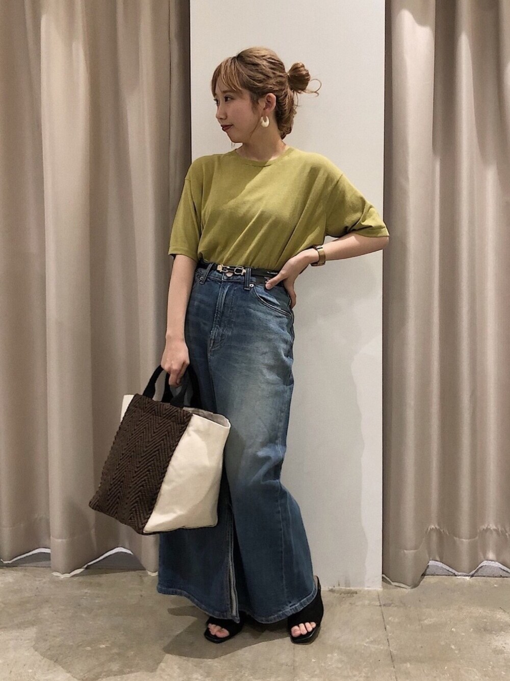 かんぬのデニムスカート「プレミアムタイトロングスカート 〇*」を使ったコーディネート