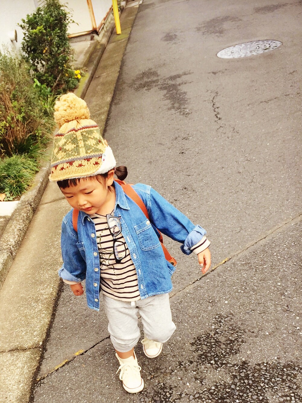 今日はデニムシャツ×スウェットパンツで親子オソロでした♡ 去年買ったニットキャップ サイズ小さくなってて頭から落ちる落ちる… 耳あて付きで気に入ってたのにな(´・ω・`) また新しいのを探そう~