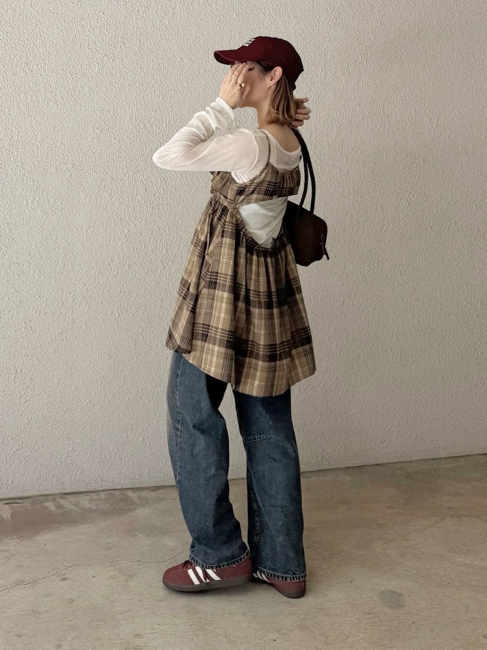 今日販売開始したチェックキャミ🤎🎶 背中が少し空いててかわいい🎶