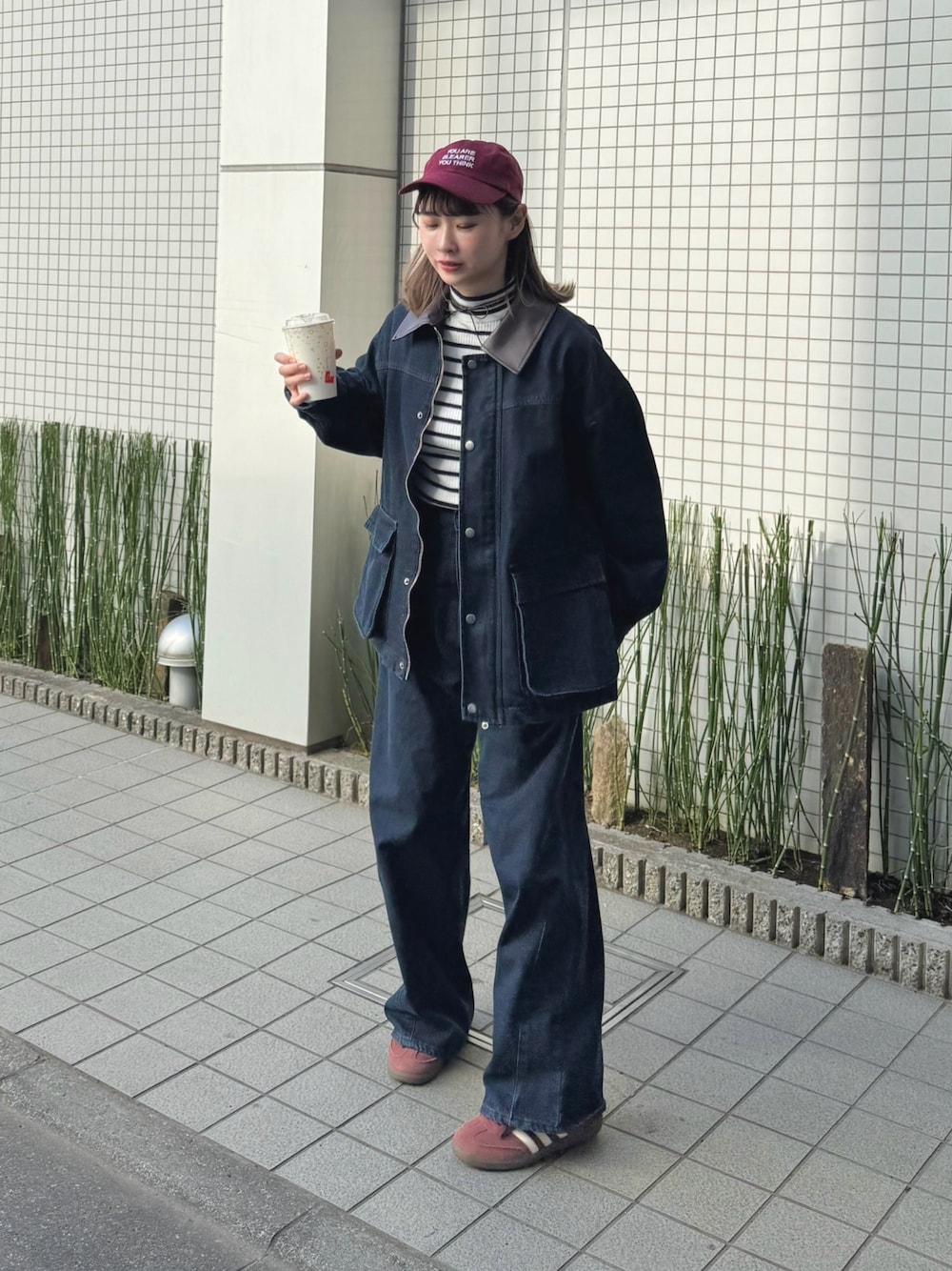 ちょこびのニット/セーター「さりげない配色デザインがお洒落。袖W配色×ハイネックリブニットトップス」を使ったコーディネート
