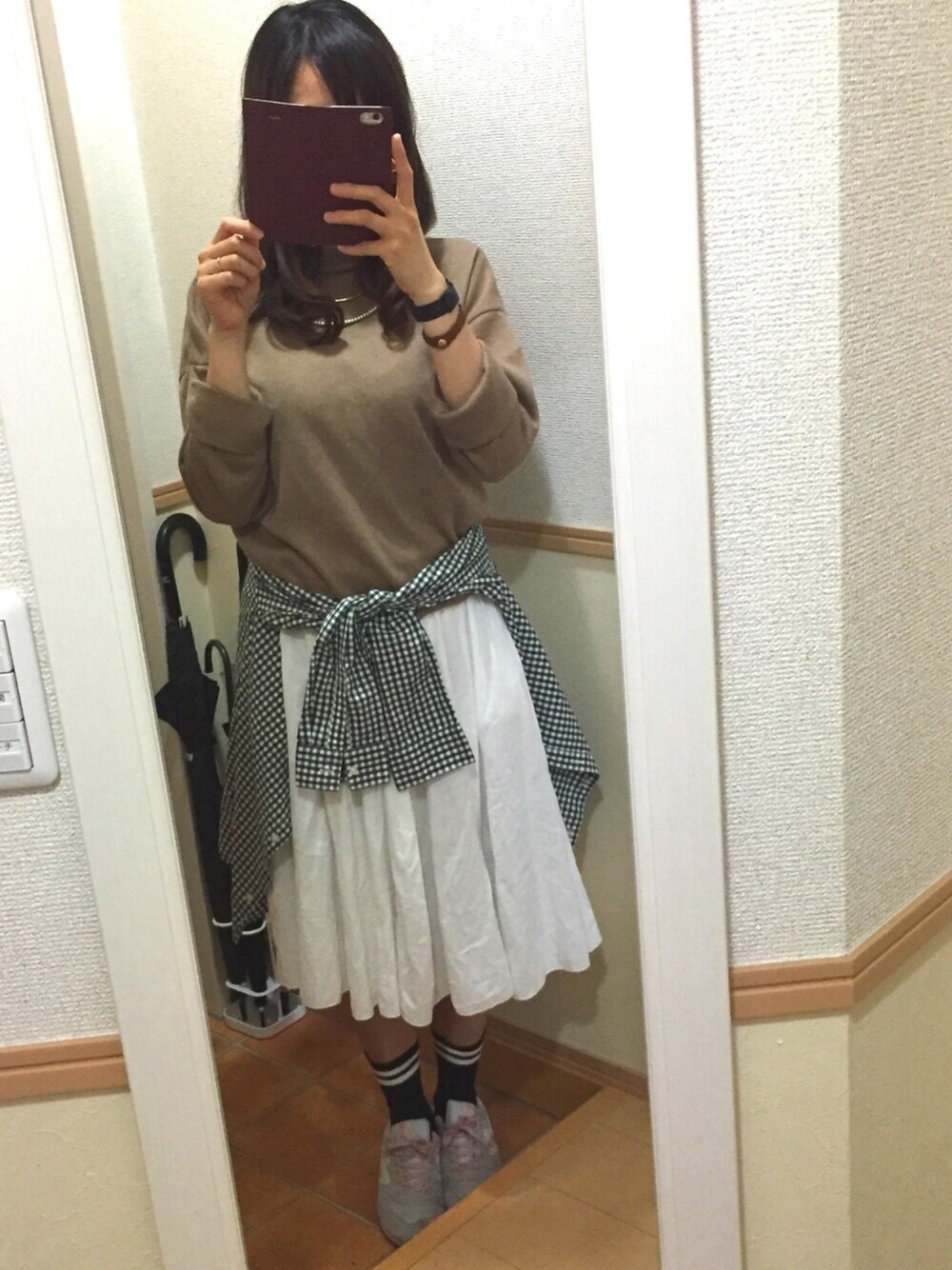 Aya*のトップス「(GU)ウォッシュブロードシャツ(ギンガム・長袖)」を使ったコーディネート