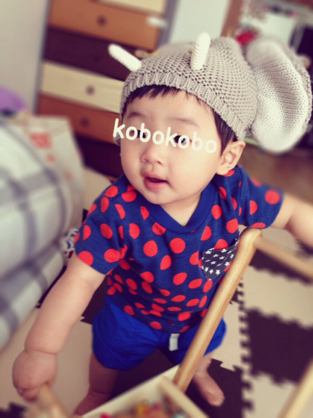 ポッケが星柄ʕ·͡ˑ·ཻʔෆ⃛ʕ•̫͡•ོʔ ゾウさんニット初挑戦(๑°⌓°๑)