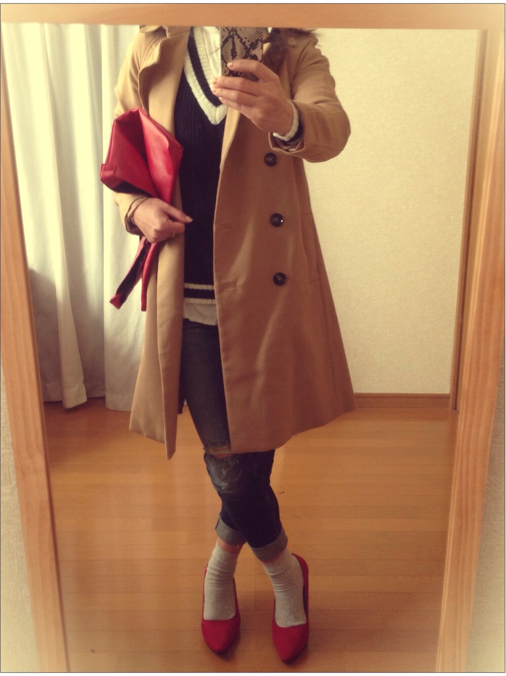 ZARAこの画像から似たアイテムを検索できます3992お気に入り (10)22A★panさんへのコメントNO COMMENTコメントはスマートフォン用アプリからご利用できます着用アイテムZARAZARAデニムパンツ (ブルー系)デニムパンツ探すZOZOTOWNで探すA★panのデニムパンツを使ったコーディネートnewパンプス♡ 気に入った赤を探すのに時間かかったー おそろでクラッチも‼︎ 赤。好きだなぁ〜コメント2件を表示2015.1.20着用ブランドZARAタグ#ヒール×靴下#トレンチコート#パンプス#クラッチバッグ#クラッシュデニム#ポインテッドトゥ#ニット#キャメルアウターモデル情報女性・159cm似ているアイテムZARA × デニムパンツA★pan@ayajp / 159cm / WOMEN0コーディネート0フォロワー注目のコーディネートアプリでもっと見るもっと見る
