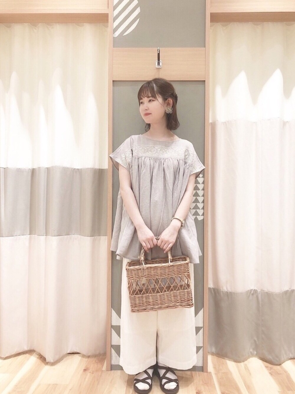 いつもご覧頂きありがとうございます✨ 胸元の刺繍とギャザーが可愛いブラウスがポイントのコーディネートです🙌🏻 パンツは丈が長すぎず短すぎずでとっても履きやすい⸜❤︎⸝ 是非店頭でもご覧下さい!