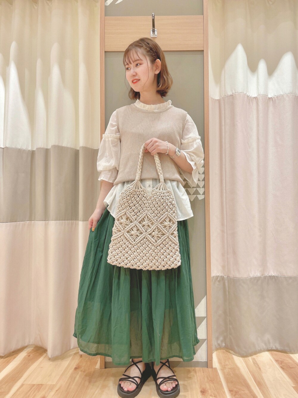 あやかのトートバッグ「マクラメトート」を使ったコーディネート