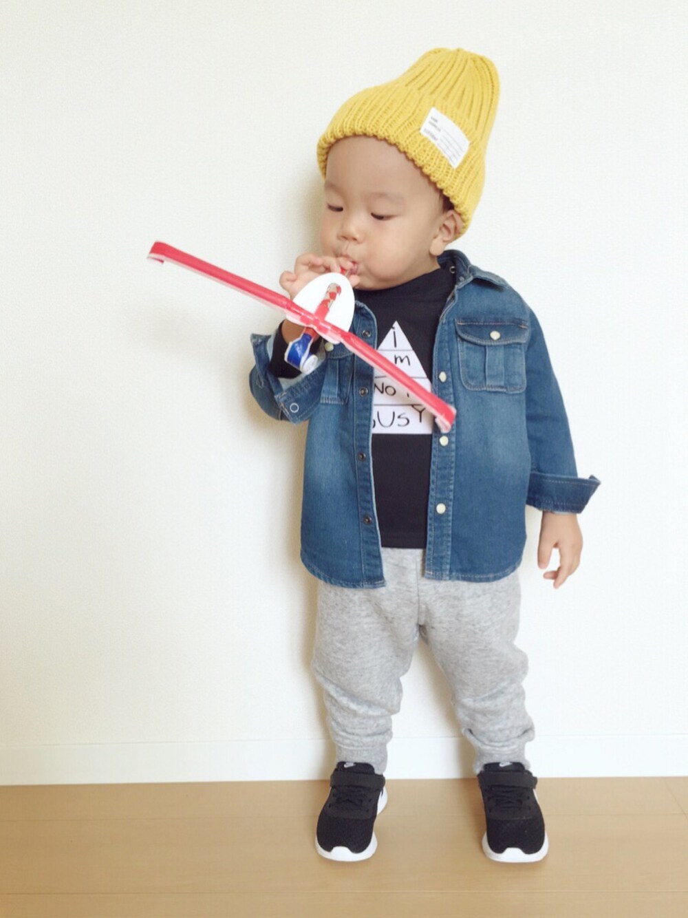 お家で写真撮ってみた♡ . 全然じっとしてくれなくて最終兵器おもちゃ! . みなさんどうやって写真撮ってるのかな⁇ . . Birthdayのトップスは i am not busy と書いてあります♡笑 . 初めて行ったけどプチプラで可愛かった♡