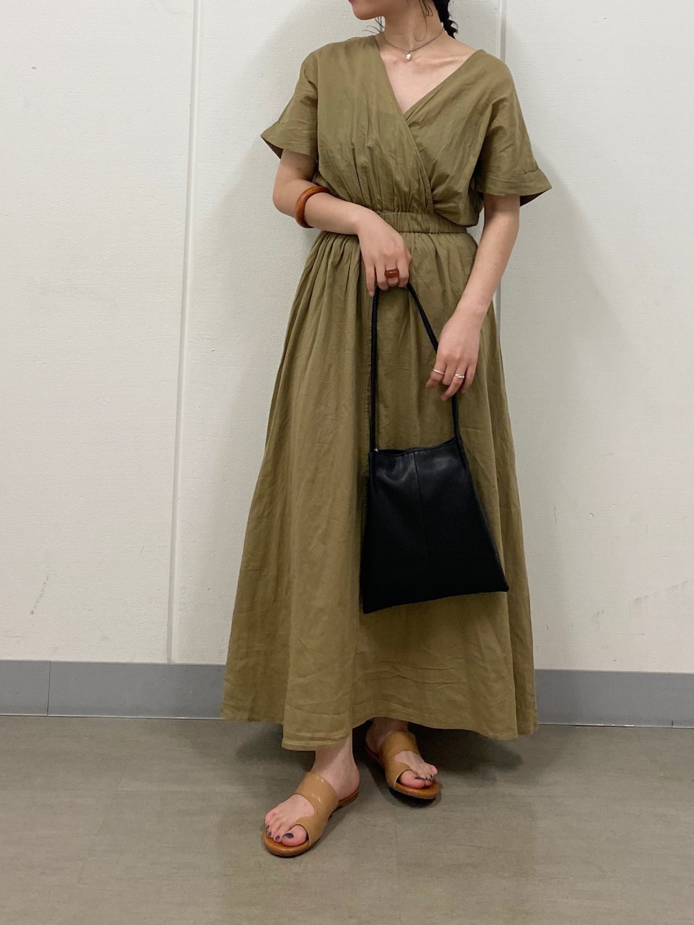 前後2wayで着られるワンピース。 1枚でおしゃれに決まるので夏にぴったりですね! サンダルでラフに合わせるのがおすすめです◯