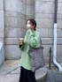 グリーン系のニット/セーターを着用したレディースの冬コーディネートの2枚目の写真