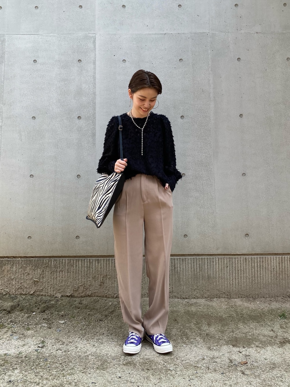 WEB限定のフェザー風パフスリーブブラウスを綺麗なパンツと合わせたら綺麗めコーデ。靴をパンプスにしたり、小物をパールにすればいろんな行事にも参加できるコーデだと思います。 *フェザー風パフスリーブブラウス フェザー×パフスリーブが可愛いトップス。コーデの主役になる一枚です。透け感もあるためこれから夏にかけて使えるアイテムだと思います。サロペットやキャミワンピースなどレイヤードスタイルとも相性◎ **センタープレスカラーパンツ ハイウエストのデザインなので脚を長く見せてくれると思います!生地感も軽くて薄いのでロングシーズン活躍しそうです。カラーもオンオフ問わず使えるカラーを3色ご用意しているのでしっくりくる1枚をぜひゲットしてもらいたいです。