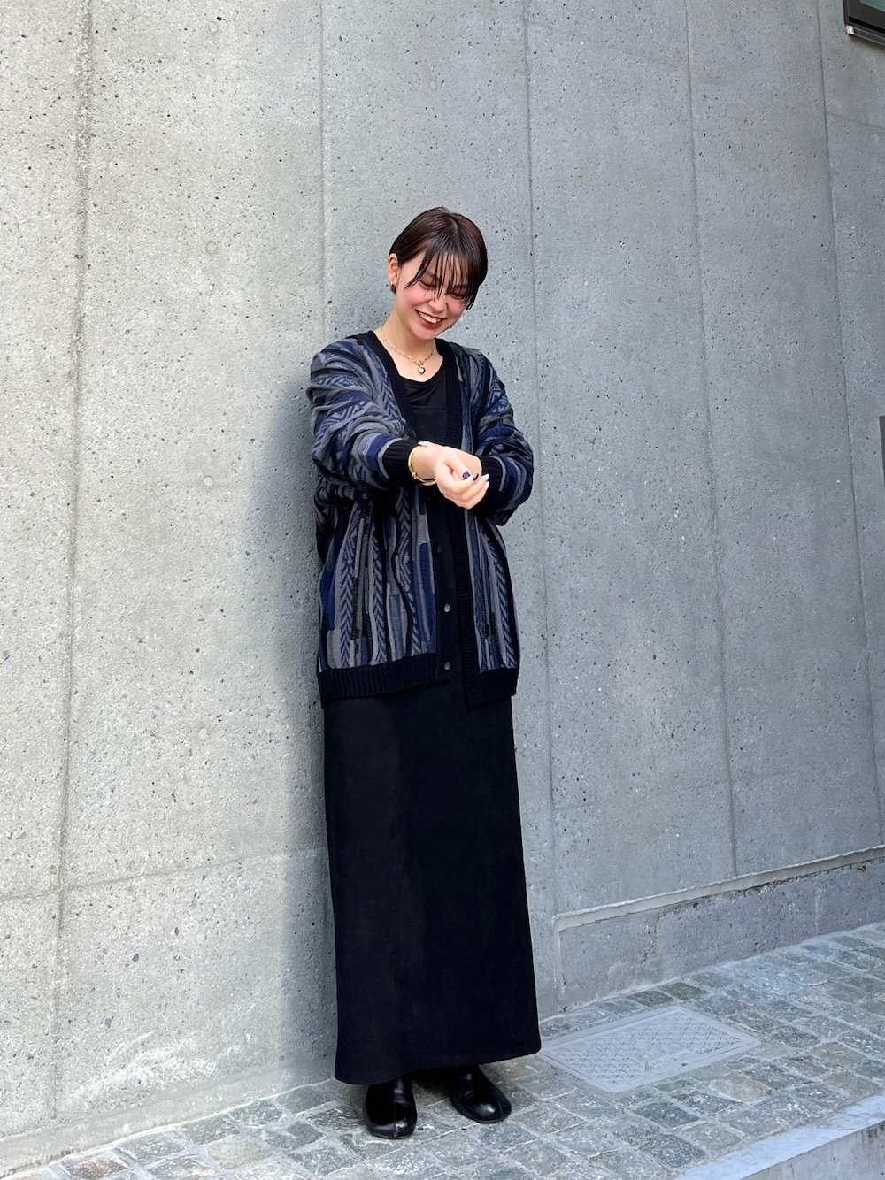 メンズの3Dニットカーデ *【2023SSアイテム】【THRIFTY LOOK/スリフティールック】3d nitting B cardigan 古着屋にもありそうなカラフルなカーデ。立体構造のジャガードは編み図の調整が難しく再現することが至難な柄。ワンピに羽織ってもよし、デニムとの相性も◎ *フェイクスウェードキャミワンピース シンプルなキャミワンピース。後ろのリボンも可愛いポイントです。キャミワンピースなので色んなレイヤードスタイルが楽しめます。アジャスター付きで長さ調整もできます。