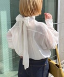 胸元のリボンが特徴的なブラウスは今季トレンドです! *【2023SSアイテム】ボウタイ付シアーブラウス ボウタイが取り外しのできるブラウス。一枚で着てもとても可愛いブラウスです。ブラウスの上にスウェットやカーディガンを羽織っても◎キレイめにもカジュアルにも使えるので是非チェックしてみてください!