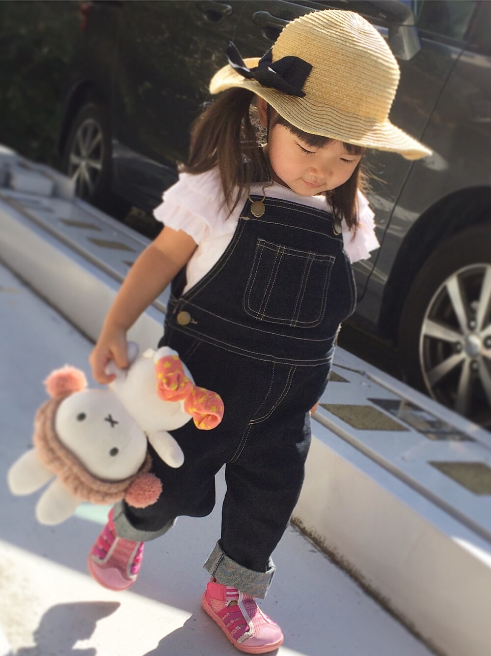 サロペットは試着したら気に入り過ぎたのか脱いでくれなくて、そのままお買い上げ😂💕 可愛くて私もお気に入り😍✨ トップスは90でピッタリな娘だけど、このサロペットは少し大きめで、90でも調節次第で長く着れそう🙌