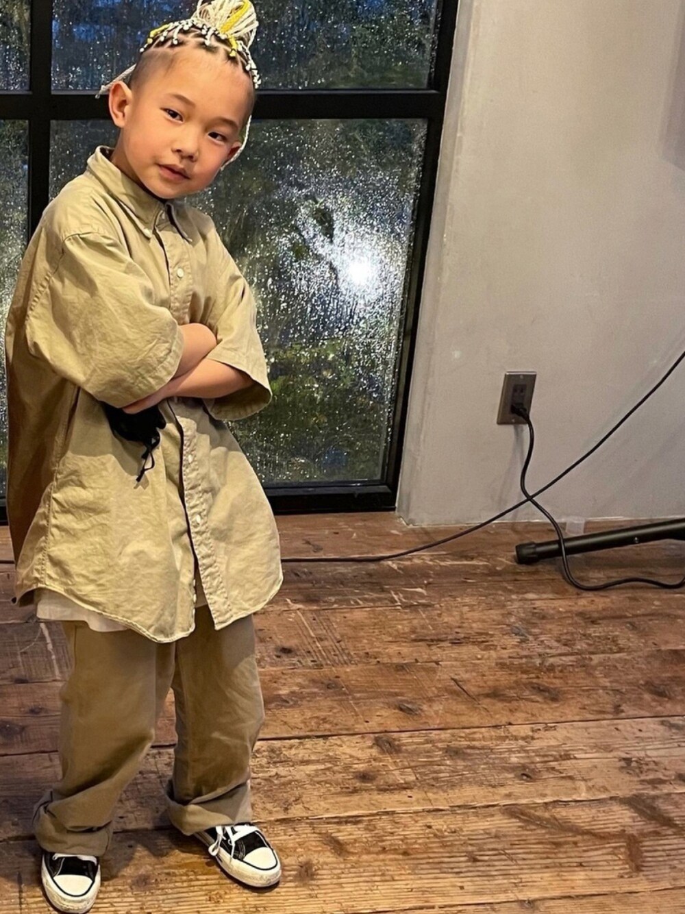 Nagiのスニーカー「コンバース/CONVERS ALL STAR チャイルド キャンバス HIカットスニーカー(白・アイボリー・レッド)」を使ったコーディネート