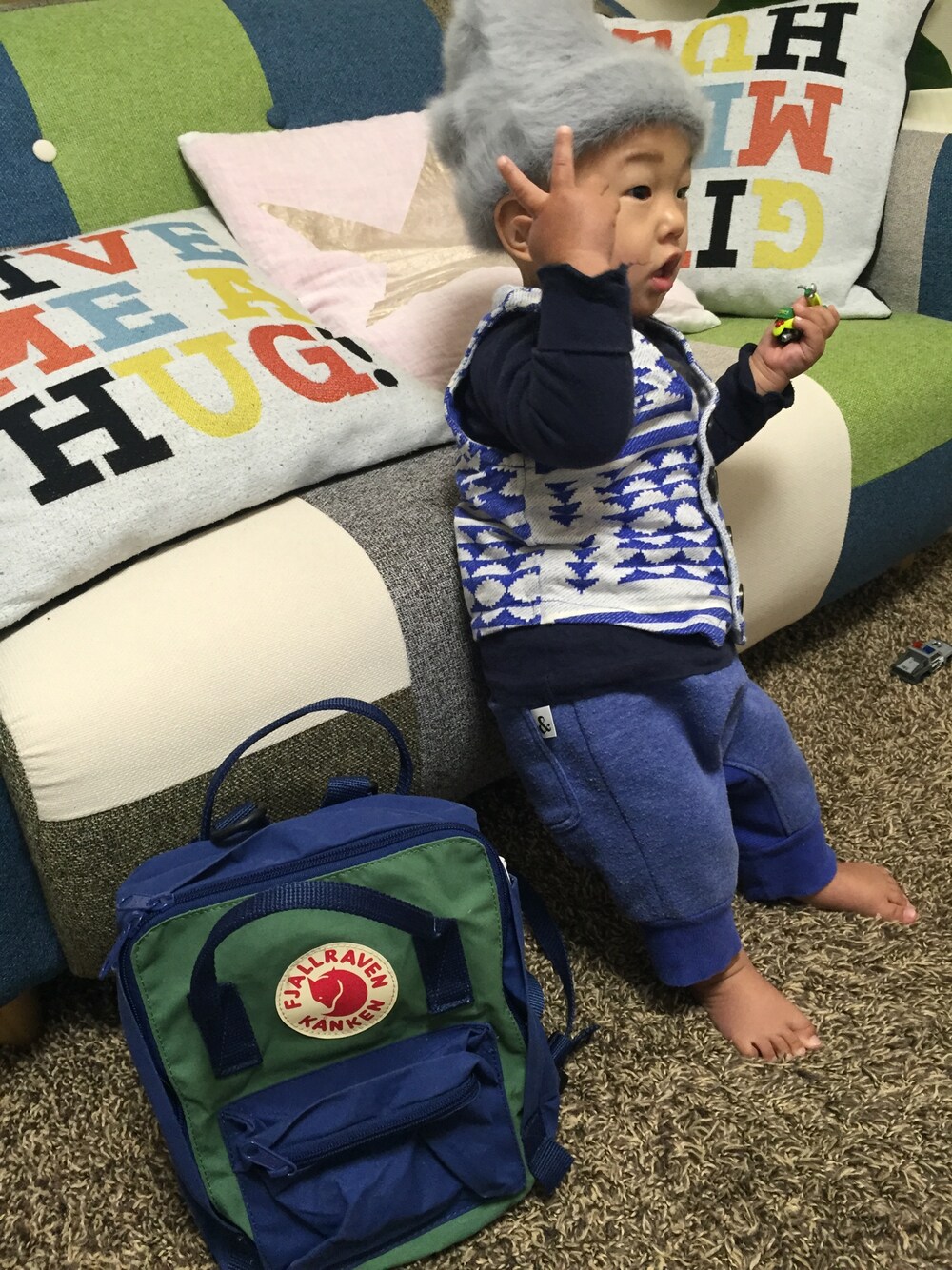 帽子が嫌で取ろうとしてる図… ピースしてるみたい(∗•ω•∗)(爆)(*^^*)