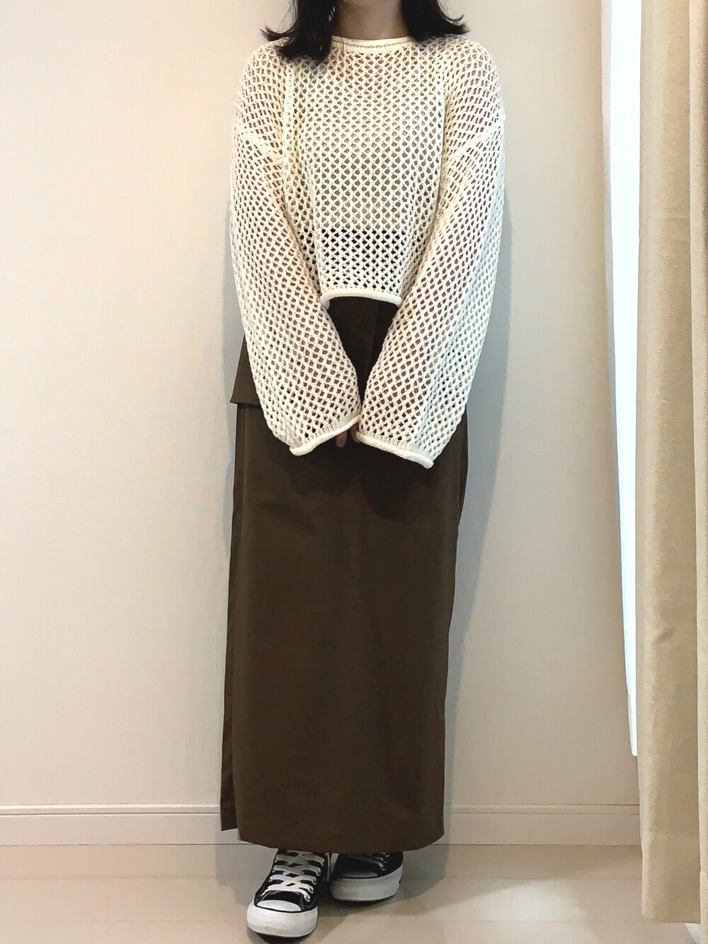 ayaka2096のニット/セーター「透かし編みメッシュショートニット」を使ったコーディネート