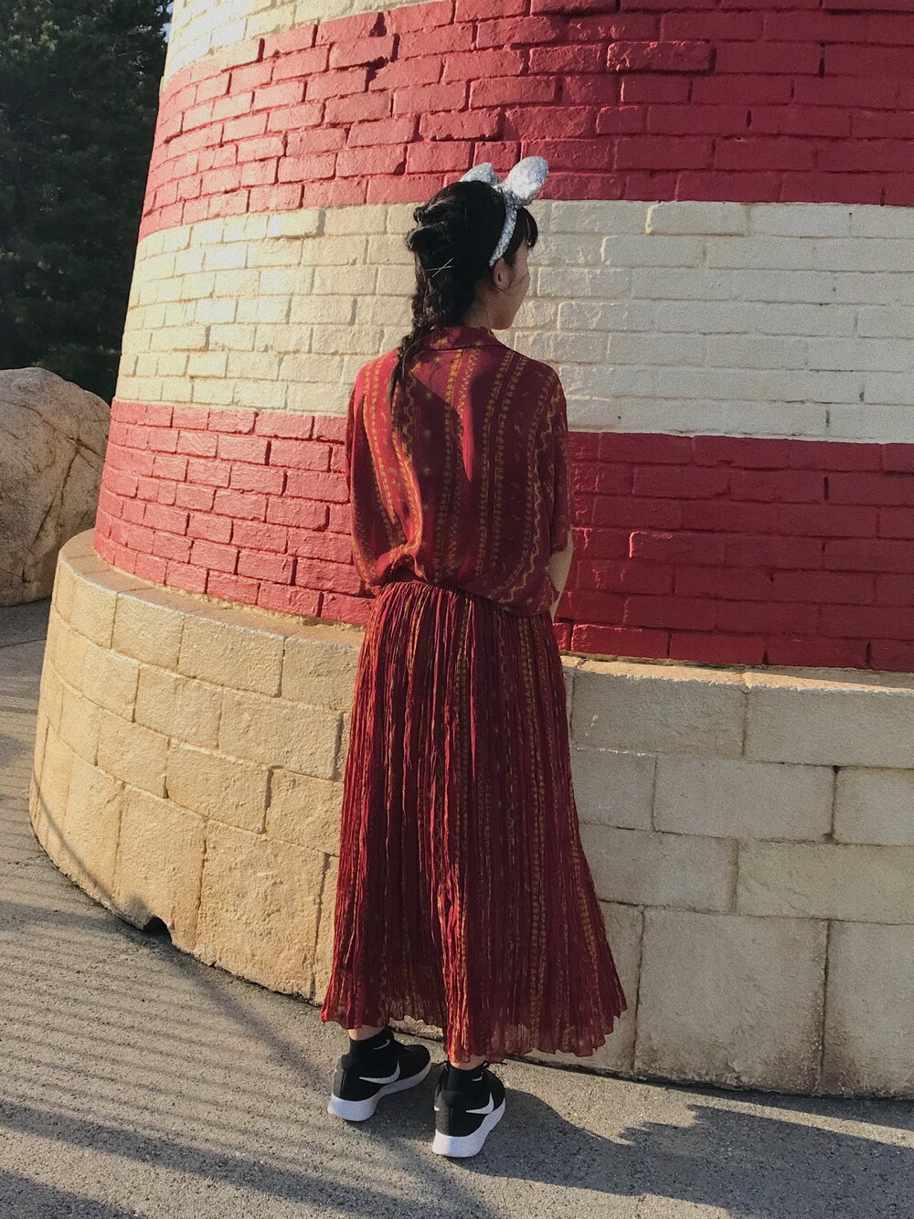 古着屋さんの赤のワンピースです ディズニーシーのケープコッドの雰囲気が好きです❤︎❤︎