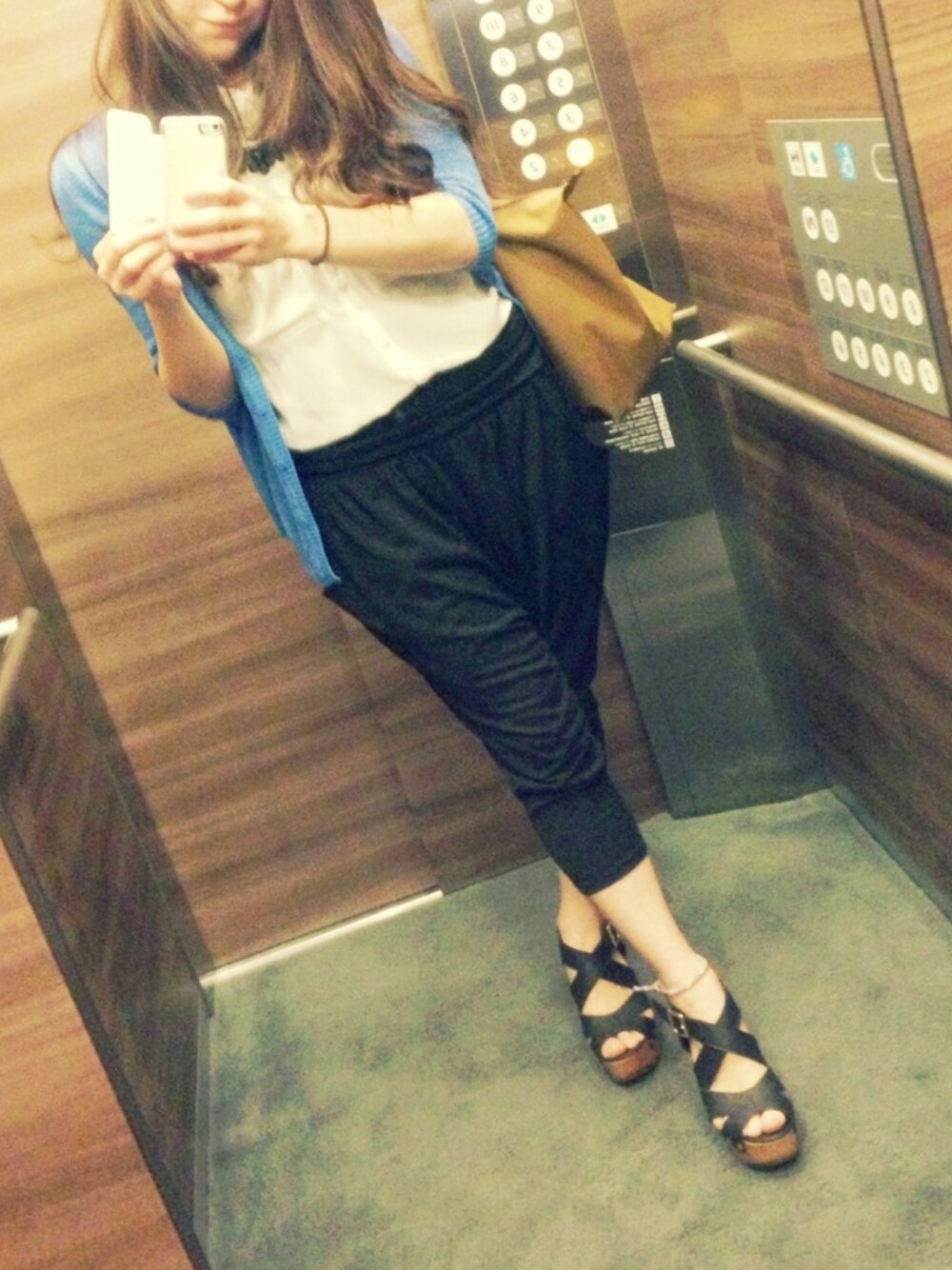 らしくないって言われたけど結構お気に入りコーデのひとつ! 青と白と黒だと勝手にモードっぽいなって思う! これも、1年前 シャツ:H&M カーディガン:bershka サルエルパンツ:moussy